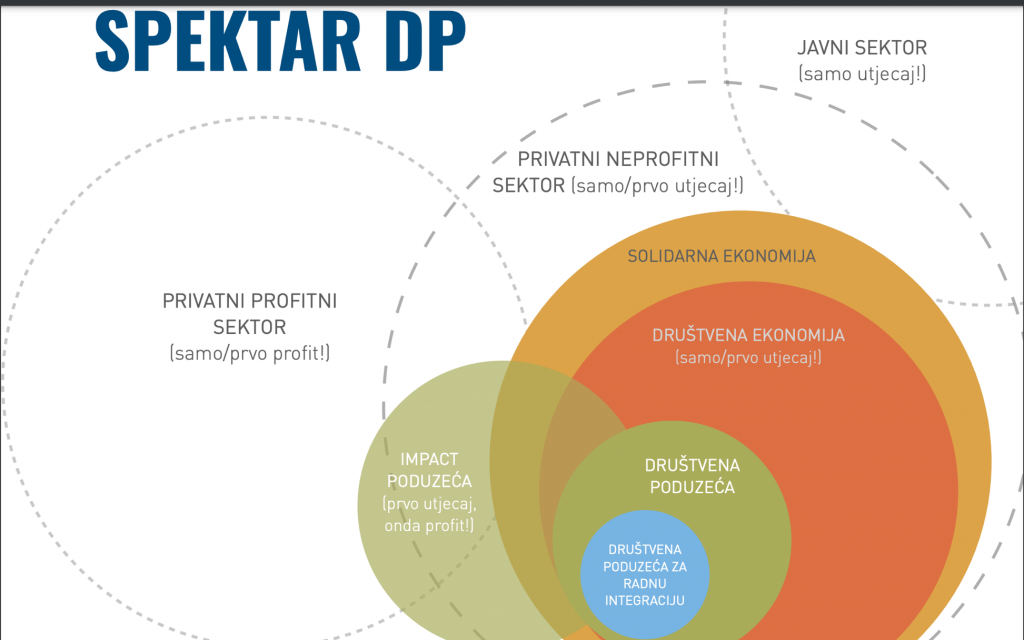 Predstavljeni su nam različiti oblici društvenih poduzeća od neprofitnih organizacija, neprofitnih organizacija s gospodarskom djelatnošču do društvenih poduzeća za radnu integraciju kao i društveno odgovornih poduzeća te tradicionalnih poduzetnika. Također, naučili smo što sve čini ekosustav društvenih poduzeća u Hrvatskoj (društveno poduzetnička kultura, institucionalni okvir, pravni i regulatorni okvir, pristup financijama, pristup tržištu, podrška razvoju kompetencija i poslovanja i upravljanje, mjerenje i izvješćivanje utjecaja).