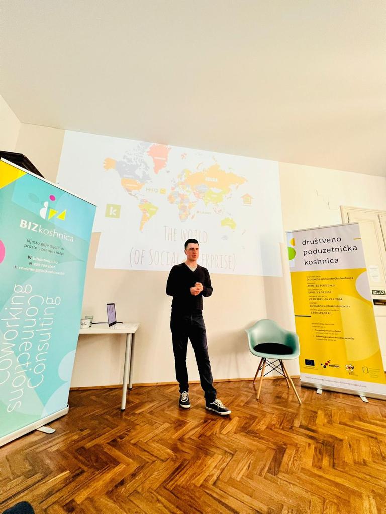 Jedna od aktivnosti projekta “Društveno- poduzetnička koshnica” su edukacije članova i korisnika BIZkoshnice o društvenom poduzetništvo. Stoga smo pozvali našeg partnera i suradnika Michaeala Freera da nam ispriča o konceptu društvenog poduzetništva i društvenih poduzeća s obzirom na njegovo bogato međunarodno iskustvo u tom području.